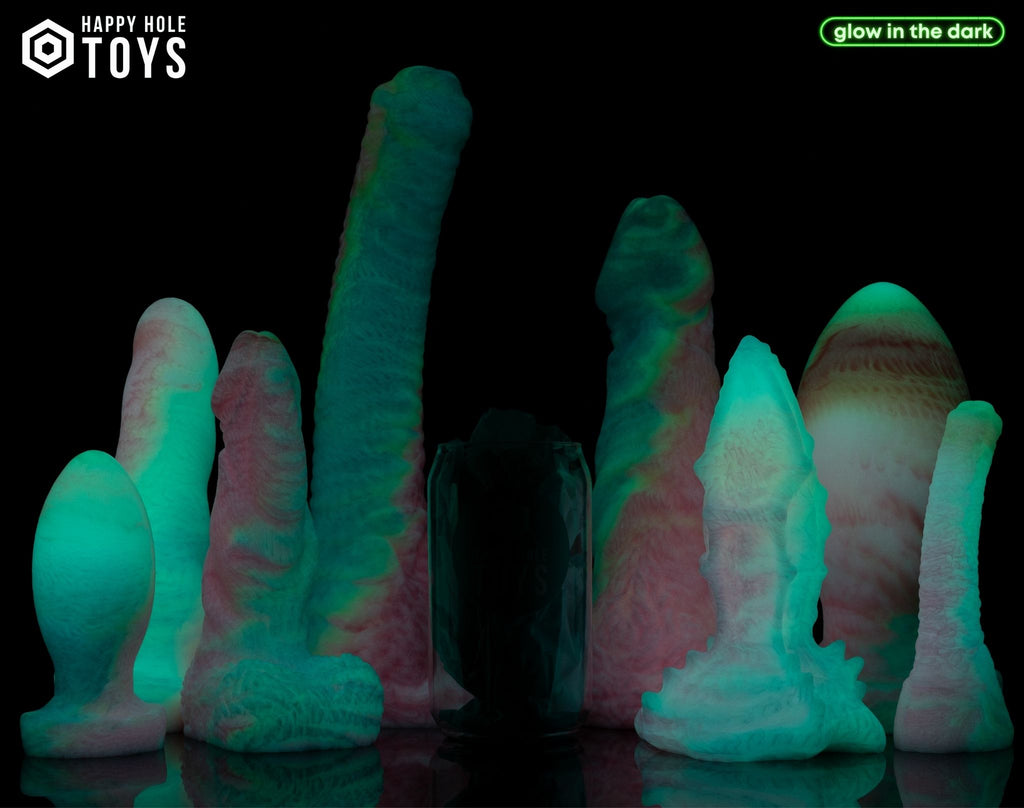 Please Note: Group photos showcase toys with comparable pour styles and colors, providing a glimpse of their UV-reactive appearance under backlight and/or how they glow in the dark. While illustrative, they may not depict the exact item listed.