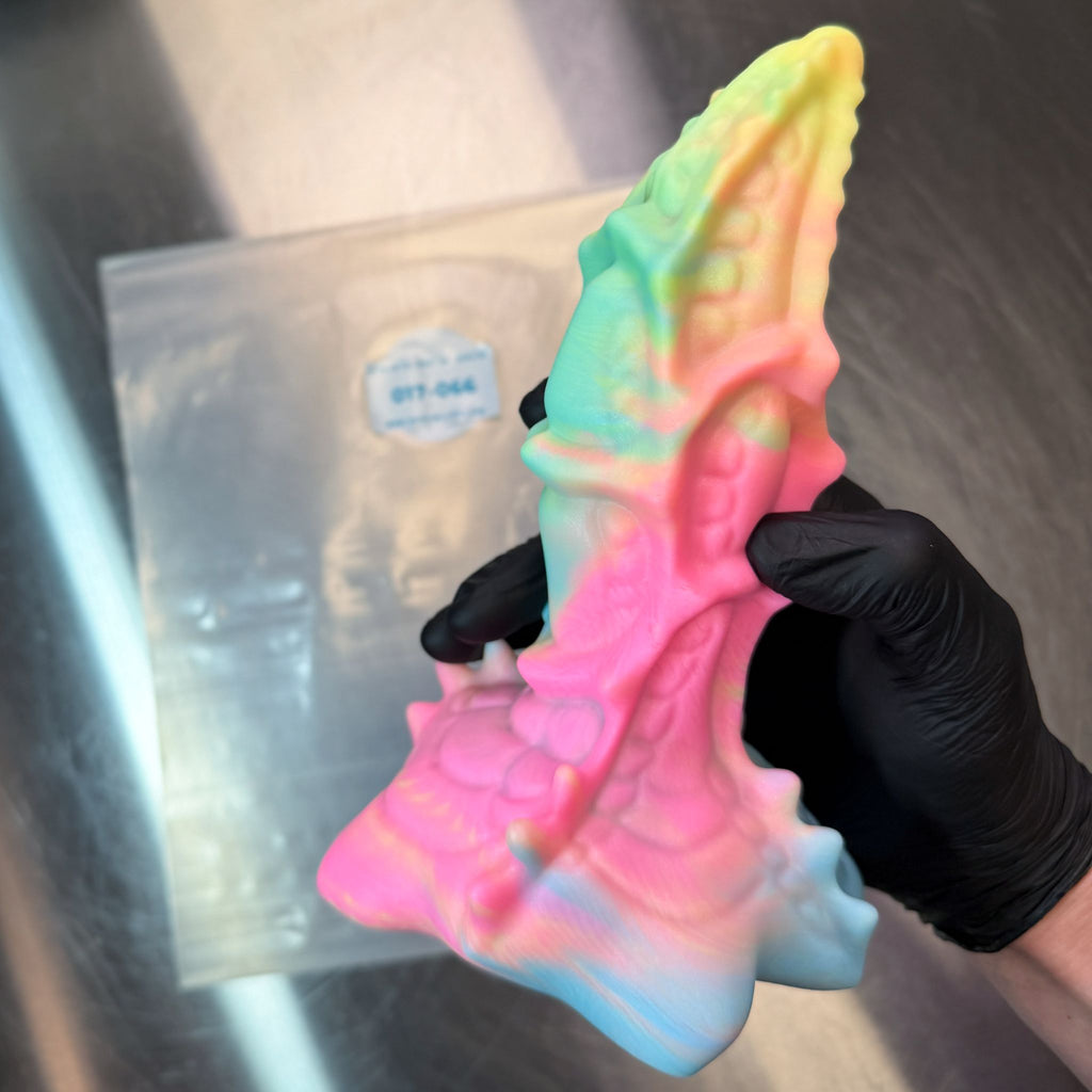 Our toys are handmade with high-quality Platinum Cured Silicone, a body-safe material that's non-toxic, long lasting, and easy to clean. It also feels great!