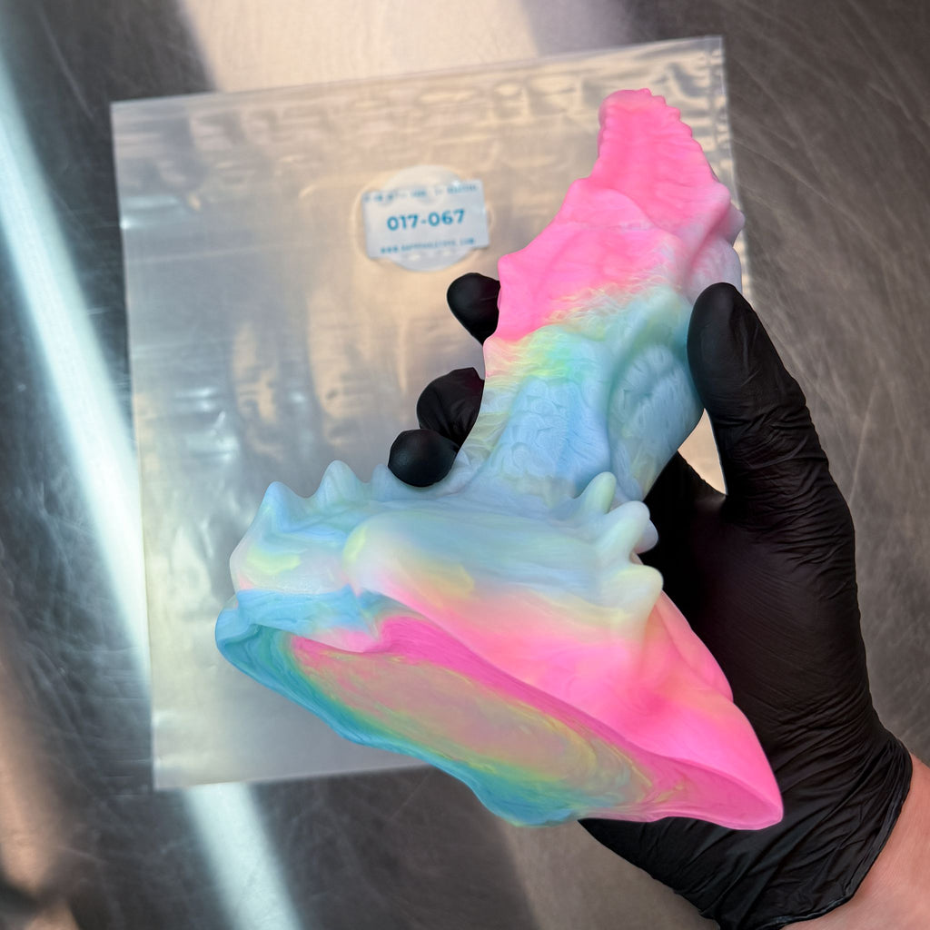 Our toys are handmade with high-quality Platinum Cured Silicone, a body-safe material that's non-toxic, long lasting, and easy to clean. It also feels great!