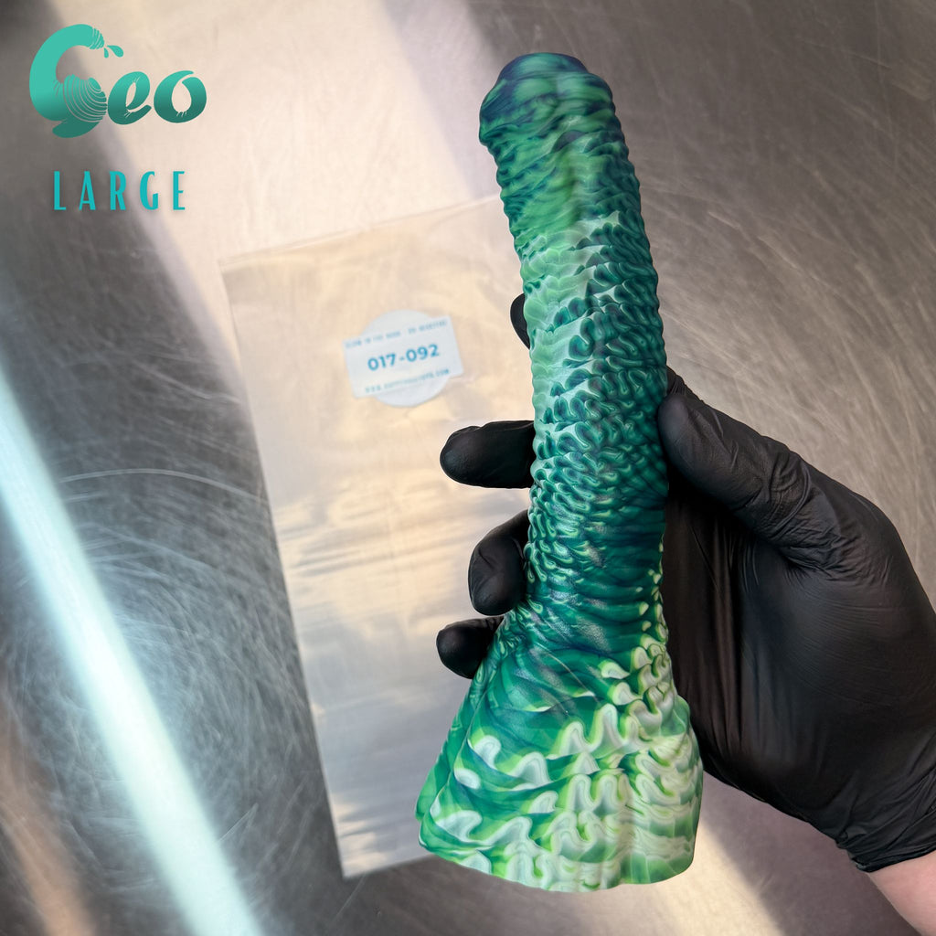 Geo's long, textured shaft and anal-safe shell base are perfect for exploratory depth play.