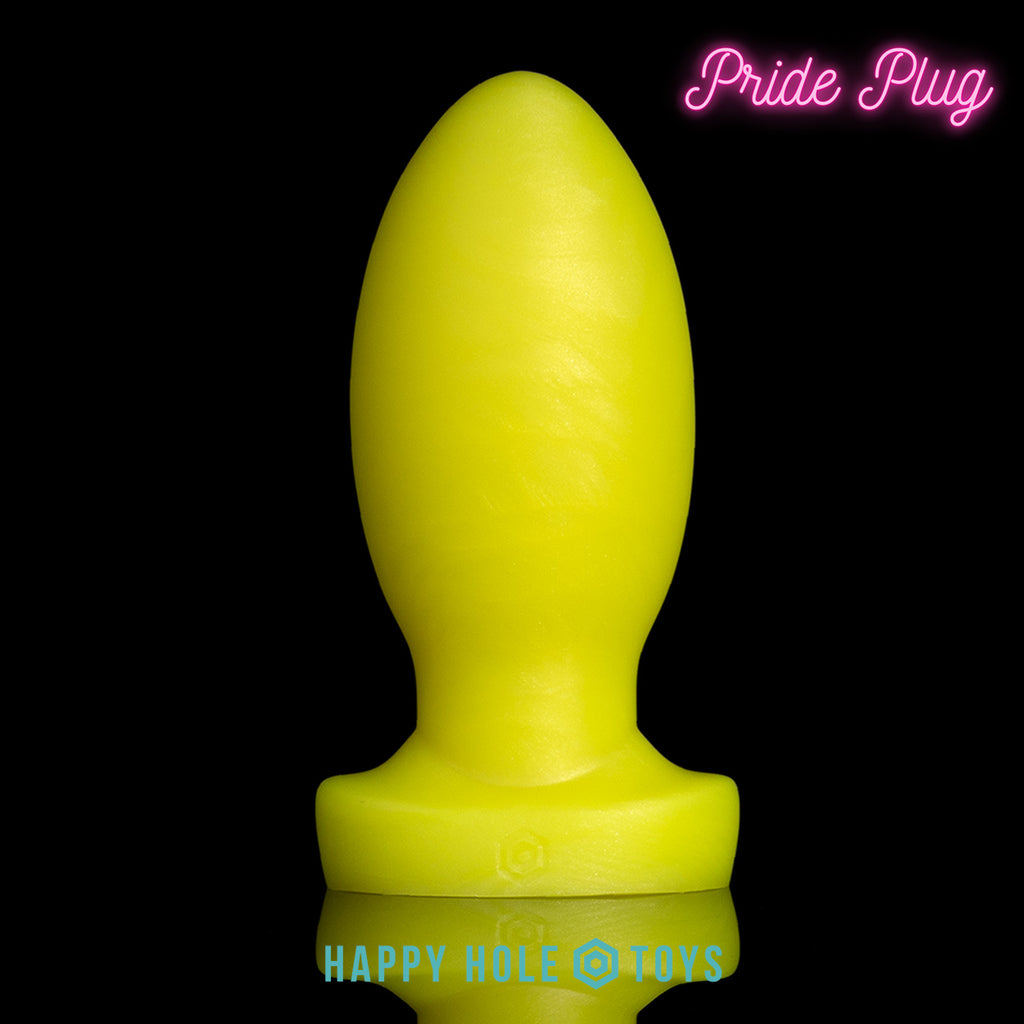 Pride Plug comes in seven sizes from 6 inch to 12 inch max circumference. Click for a size chart and text-reader friendly size information or visit Pride Plug's page for this and more!